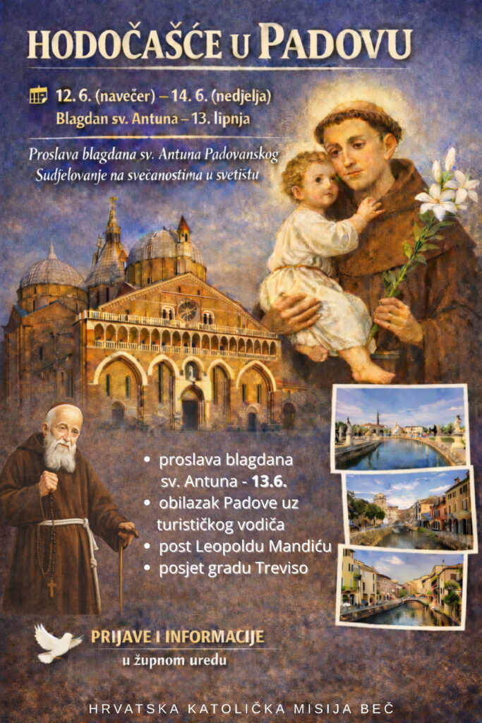 - Najavljujemo nekoliko hodočašća: u Međugorje kraljici Mira od 29.04. – 03.05.; Podmilačje od 21. – 24.06.; Italija od 31.5. do 6.6. putevima padra Pia; 12.6. navečer do 14.6. u Padovu, na sam dan sv. Antuna Padovanskog; 14.03. je jednodnevno hodočašće sv. Josipu u Karlovac, gdje će tog dana biti posveta crkve u baziliku.